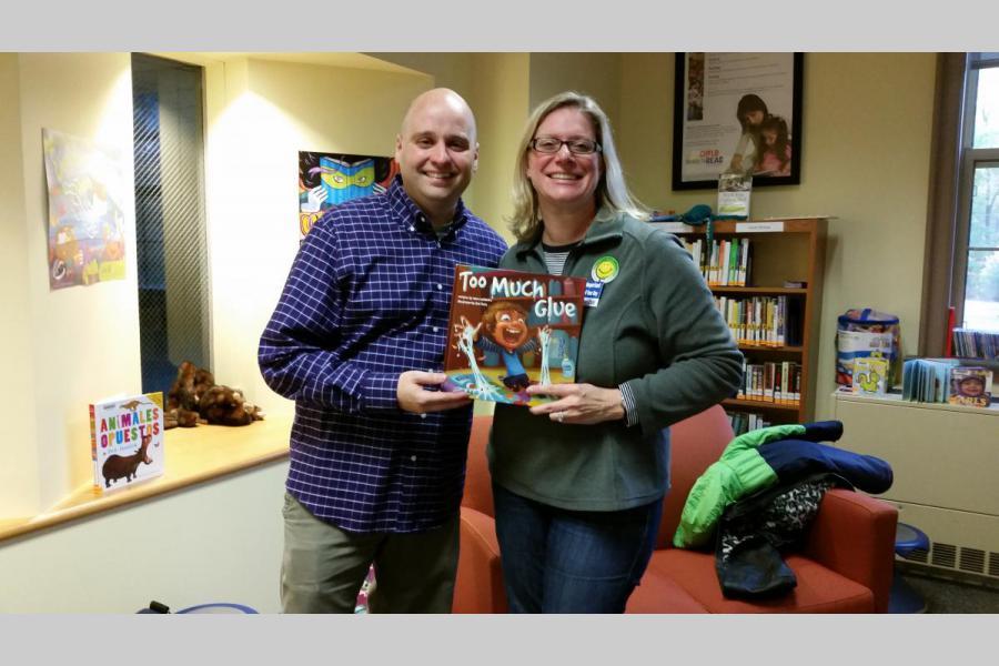 On Saturday, October 24th, author Jason Lefebreve visited with children across Worcester and read his book Too Much Glue. Jason traveled across the city to each One City, One Library location and shared an engaging and energizing presentation on how he thought of the idea for the book. Following a book reading, children were invited to check out a copy of the book and make a mini glue suit, just like Matty! Special thanks to collaborating partners: Edward Street Child Services, Worcester Public Library, Worcester Family Partnership, and the Department of Early Education and Care who made this event possible.